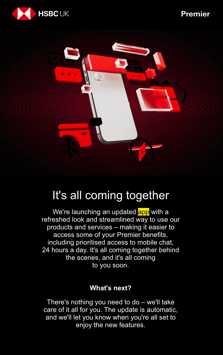 I'm currently working on the content design and UX writing for key customer journeys within HSBC's revamped and redesigned global app, with a focus on Premier customer journeys.